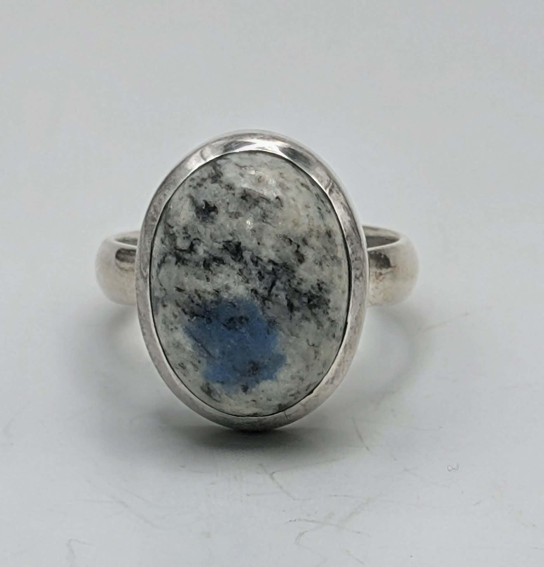 This Size 7 K2 Jasper ring is crafted in 925 sterling silver and features a natural stone sourced from the K2 mountains in Pakistan. The striking white granite is flecked with vivid blue azurite, creating a one-of-a-kind pattern. In metaphysical traditions, K2 Jasper is said to support clarity, focus, and connection to higher awareness, while the azurite inclusions are believed to encourage insight, intuition, and mindful intention. A unique and meaningful piece for anyone seeking to carry intention and balance in their daily life.
